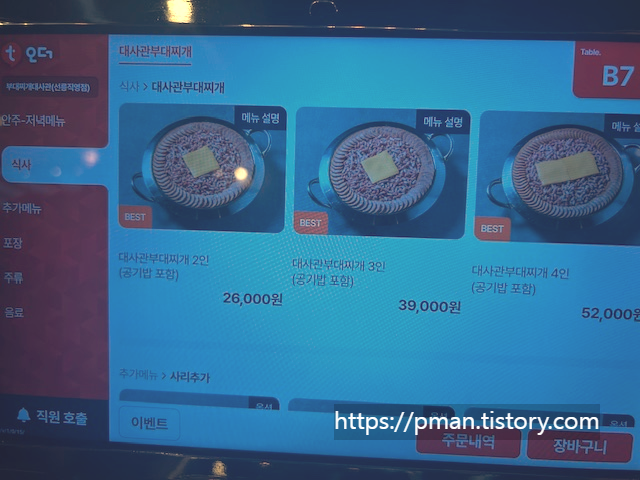 메뉴사진보고 조금 놀란 것이, 수원에 있는 이나경부대찌개집과 완전 같네요...
