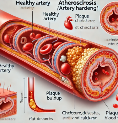 동맥경화는 동맥(혈관)이 딱딱하게 굳고 좁아지는 질환으로, 주로 혈관 벽에 콜레스테롤, 지방, 칼슘 등이 쌓이면서 발생합니다.