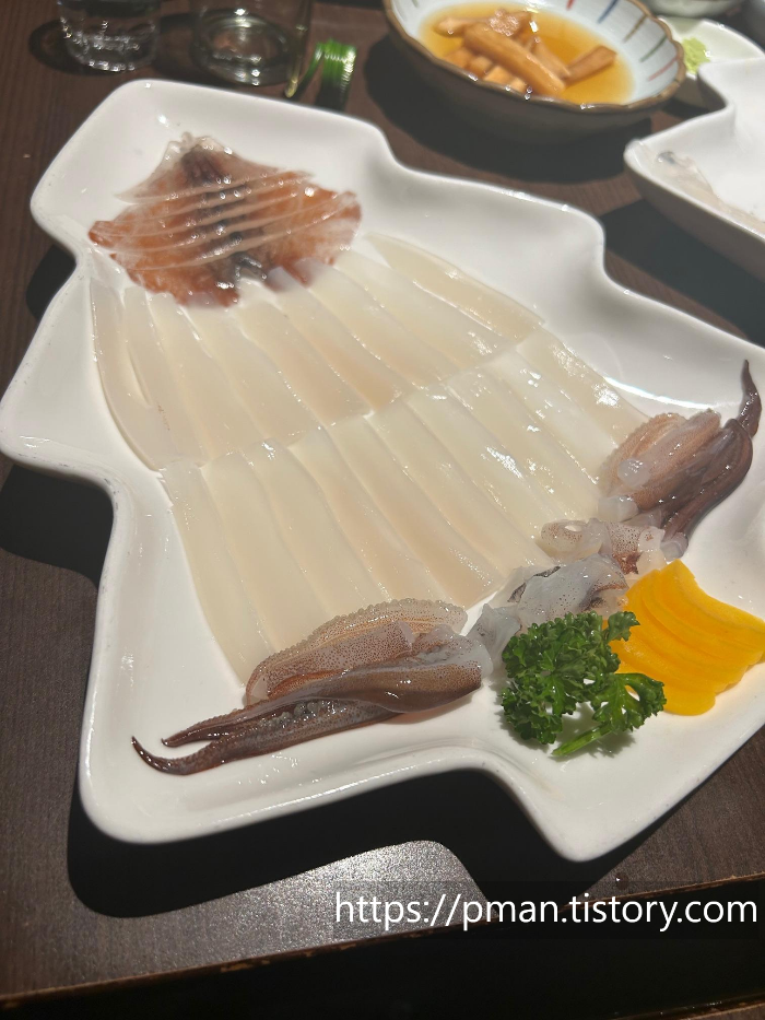무늬오징어회, 갑오징어회, 일반오징어회로 각각 주문했어요.